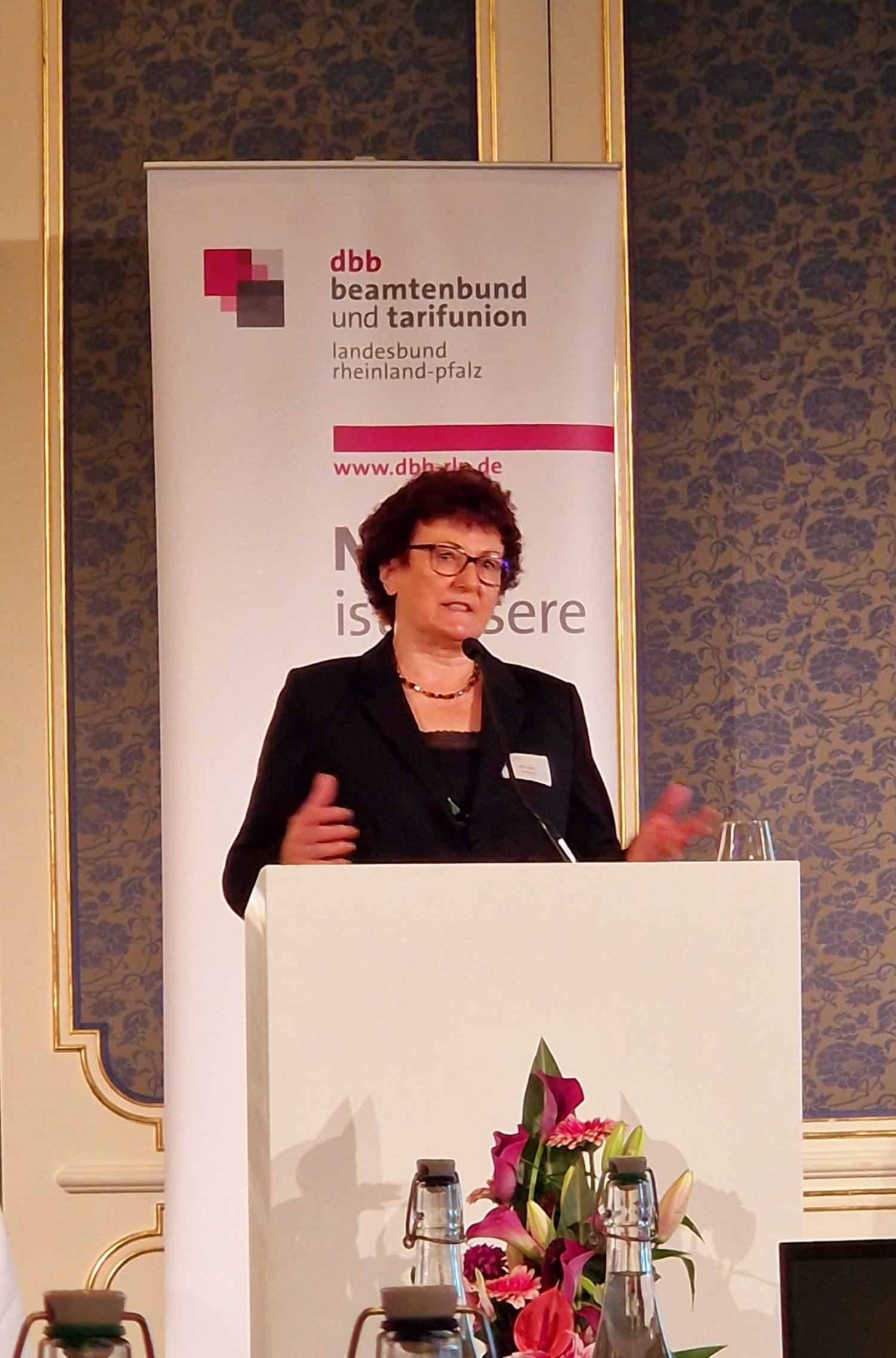 der Rahmen des Gewerkschaftstages des dbb und tarifunion Rheinland-Pfalz ist die Kollegin Lilli Lenz mit überwältigender Mehrheit für weitere fünf Jahre als Vorsitzende gewählt worden. Damit tritt sie nun in ihre vierte Amtszeit ein. Durch dieses überzeugende Wahlergebnis haben die Delegierten den Gewerkschaftstages nicht nur ihre Leistung der vergangenen Jahre gewürdigt, sondern auch ihre Wertschätzung deutlich gemacht.